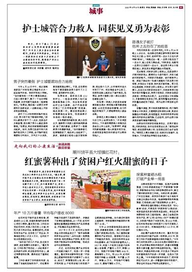 昨天,烈日下救人20多分钟的护士张雯和城管莫贤超获得广州市见义勇为基金会的表彰慰问,并获证书和奖励金。和他们一同获奖的还有勇斗歹徒制止不法侵害的好市民、路遇临产孕妇火速送医的司机师傅等。 ■新