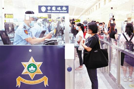 ■17日,珠海出入境边防检查总站与澳门特区政府治安警察局在横琴口岸新旅检区域联合开展模拟通关实战演练,全力保障18日横琴口岸新旅检区域顺利开通。新华社发 |