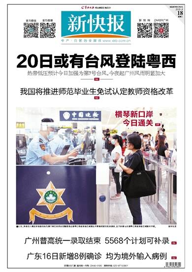 20日或有台风登陆粤西 热带低压预计今日加强为第7号台风,今夜起广州风雨明显加大 06 我国将推进师范毕业生免试认定教师资格改革 02 横琴新口岸 今日通关 0