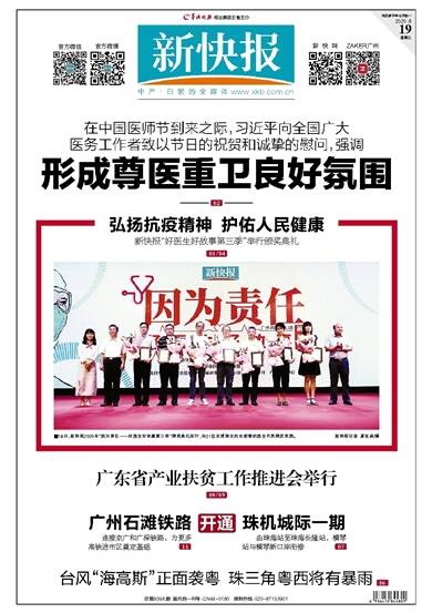 在中国医师节到来之际,习近平向全国广大 医务工作者致以节日的祝贺和诚挚的慰问,强调 形成尊医重卫良好氛围 02 弘扬抗疫精神 护佑人民健康 新快报“好医生好故事第三季”举行颁