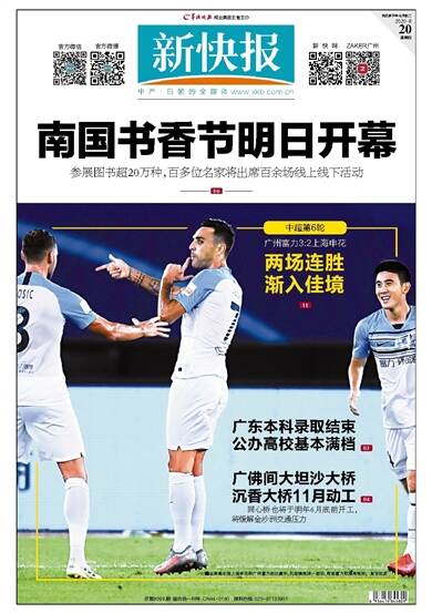 南国书香节明日开幕 参展图书超20万种,百多位名家将出席百余场线上线下活动 06 中超第6轮 广州富力3:2上海申花 两场连胜 渐入佳境 11 广东本科录取结束