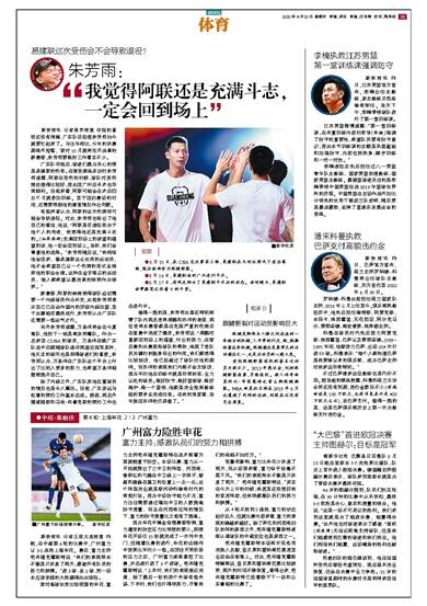 朱芳雨:“我觉得阿联还是充满斗志, 一定会回到场上”