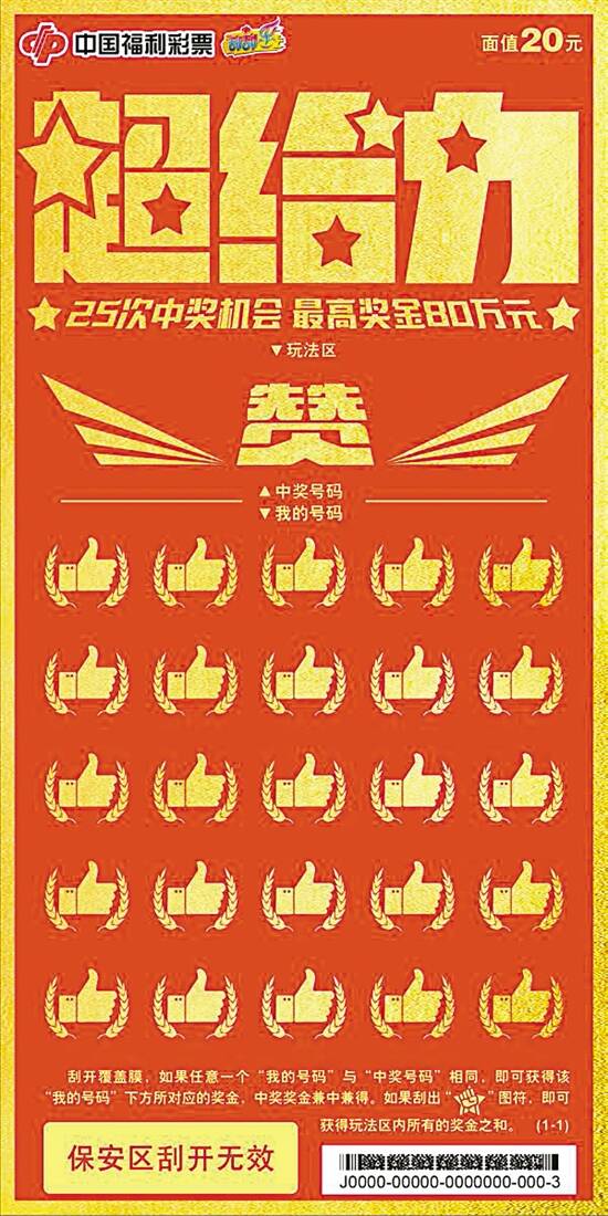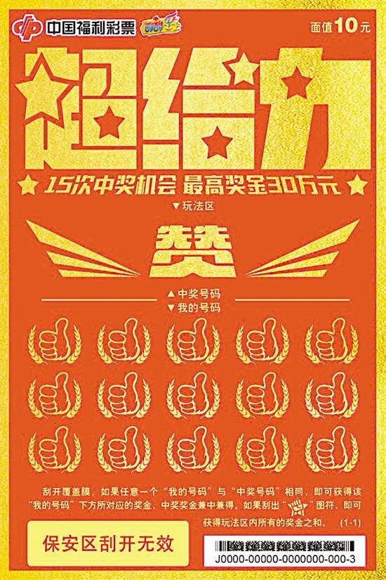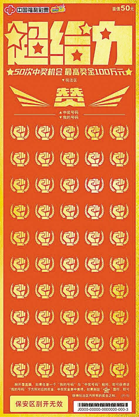 ■新快报记者 陆妍思 通讯员 梁一鸣 超好玩 “超给力”系列上市最高奖金100万 6月以来,福彩首款面值50元刮刮乐即开票“超级幸运”上市,在彩市刮起一股刮奖旋风,6月18日至7月15日,“超级幸运刮 福运带回家”5000万元大派奖活动太给力,不少彩民喜中四等奖以上,获得固定派奖,实现奖金翻倍,江门市蓬江区杜阮镇一彩民中得广东省唯一的一等奖,获得200万元(含 100万元派奖)。 欢乐气氛尚存,彩民意犹未尽。近日,刮刮乐第二款面值50元即开票“超给力”闪耀登场,同系列“超给力”20元和“超给力”10元票同时在全国各地上市,再起刮彩热潮。 “超给力”系列标题设计大气有力度,极具冲击感;色调整体由红、金构成,直击重点,简洁明快,为2020年实现全面建成小康社会宏伟目标鼓劲加油,主题突出。“超给力”50元票50次中奖机会,最高奖金100万元;“超给力”20元票25次中奖机会,最高奖金80万元;“超给力”10元票15次中奖机会,最高奖金30万元。玩法统一采用最受欢迎的“对数字+特殊图符”玩法,简单易上手。 超给力 1.5亿元派奖奖金翻倍再度来袭 随“超给力”上市接踵而来的,是更给力的促销活动。9月7日至8日,“试刮有惊喜”活动率先登场,每天9时至22时,手机用户只要关注“福彩刮刮乐”微信公众号,并完成手机号绑定,即可免费参与试刮游戏活动,有机会获得随机现金红包奖励。 9月10日起更将启动“超给力”系列 1.5亿元派奖盛宴。 该活动于9月10日零时起至10月20日17时止开展“超级给力 超级派奖”活动,奖金翻倍再度来袭。活动期间,对兑取“超给力”游戏1万元及以上奖等(50元票1-3等奖、20元票1-2等奖、10元票1-2等奖)的购彩者进行派奖,每个奖等的派奖金额等于相应奖级的设奖金额,具体为:兑取100万元的中奖者,派送100万元固定奖金;兑取80万元的中奖者,派送80万元固定奖金;兑取30万元的中奖者,派送30万元固定奖金;兑取10万元的中奖者,派送10万元固定奖金;兑取1万元的中奖者,派送1万元固定奖金。本次派奖费用预计1.5亿元,从中福彩中心一般调节基金支出,若派奖期内派奖奖金派发完毕,派奖活动自然截止;若派奖到期后派奖奖金有结余,结余奖金返回一般调节基金;若派奖奖金超支,差额部分从一般调节基金中补齐。中奖者,应在规定时间内及时到销售机构指定的地点兑取中奖奖金并获得派奖奖金,中奖者须按规定缴纳相应税费。符合条件的中奖者不能在规定时间内兑奖的,视为放弃派奖奖金。 派奖盛宴奖励力度之大,三款票可选,奖金翻倍机会相对较多,欢乐幸运重在参与,让我们一起期待“超给力”派奖盛宴的来临。