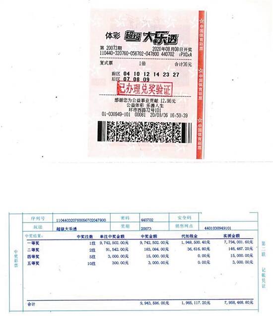 不中奖就当做善事也不错 虽然张先生戴着口罩,但从眉间的纹路看,应该是个喜欢思考的人。 他表示,自从超级大乐透上市以来,他就开始买这个玩法:“之前都是买单式的,因为不太懂玩法,后来这两三年在彩友的指导下,开始接触复式投注这种方式,应该比单式省钱,中奖率也会高些。”张先生说,自己几乎每期都会去实体店“打卡”的,但从不蹲点看开奖公告:“基本上都是买下一期的时候才会顺便对之前买的,不会上网查阅或者看开奖节目”。 对于是否中奖,张先生的心态也比较佛系:“中奖那当然好,不中奖就当做善事也不错。反正我买得不多,一个月五六百元,其他人买烟打麻将不也差不多要花这么多。” 工作继续做但心态更轻松 张先生说,之所以晚了几天才兑奖,就是由于自己的习惯导致:“我平时不会上网查或者看开奖节目。这不是周日大乐透又要开奖嘛,所以去彩票店买最新那期的。店员告诉我说他们店里中了个头奖,叫我自己对一下。”当期开奖号码是“前区04、10、12、23、27;后区08、09”,张先生购买的号码为“前区04、10、12、23、27;后区08、09”,7个号码全中! “我本来都不太相信会是自己,当拿出来一看,我选的都开了,当时真是觉得太不可思议了!”得知中奖后,他马上告诉妻子,并向单位请好假去兑奖。 张先生说,这个大奖说大不大:“在广州买一套房还不太够,工作还是得继续做的,但我对待工作的心态可能会有所改变,比方说以前必须咬着牙拼命干的,可能现在会放轻松些。”