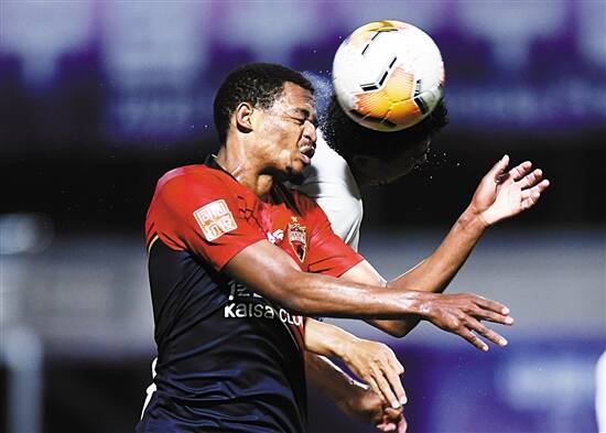 ■深圳佳兆业队球员普雷西亚多(前)在比赛中争顶。新华社发 |