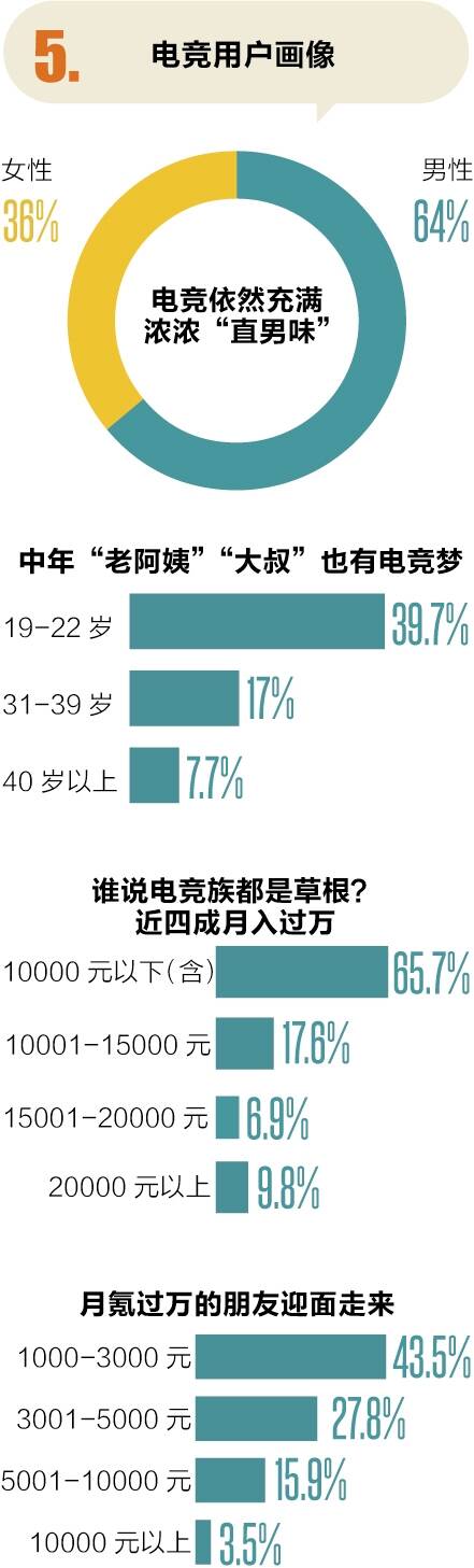 电竞行业最缺啥? 近半从业者说:经营管理人才 2019年6月,人社部中国就业培训技术指导中心联合阿里钉钉发布《新职业在线学习平台发展报告》,数据显示,未来5年,新职业人才需求规模庞大,人才缺口近千万,其中预计电子竞技员缺口近200万、电子竞技运营师缺口近150万。 该报告指出,中国已经成为世界上最具影响力和最有潜力的电子竞技市场,同时对于高层次、高水平、高素质的电子竞技选手、电竞战队教练、电竞数据分析、电竞项目陪练等相关岗位的需求也变得越来越迫切。由于人才培养体系缺乏,行业人才积累不足,人才稀缺将成为电竞这一新兴产业发展面临的瓶颈。 即便目前的电竞人才有高额的收入,但是行业依然存在较大的人才缺口。数据显示,目前国内热门电竞赛事超过了500项,国内正在运营的电子竞技战队(含俱乐部)超过5000家,然而,由于行业发展愈加迅猛,电竞人才缺口便愈加严重。 超竞教育联合腾讯电竞和《电子竞技》杂志发布的《2019年度中国电竞人才发展报告》亦指出,有47.76%的电竞从业者认为电竞行业目前最缺乏经营管理类人才。在现有的电竞机构中,有超过五成受访者所在的部门有扩招的需求。更有超过六成受访者所在的部门在更长期的情况下仍然有计划扩招。有47.76%的电竞从业者认为电竞行业目前最缺乏经营管理类人才。 逾七成人每周工作超40小时 获得涨薪的比例却不足一半 报告称,从业者平均每周工作时间超过40小时的有74.45%,甚至有15.5%的受访者每周工作时间超过60小时。报告指出,九成从业者对自己工作满意,认为行业薪资具有竞争力。晋升空间和工作内容本身都有接近五成的受访者认为会影响工作的满意度,工作强度反倒是大家现在不太重视的部分,这也和整个行业从业者年龄偏低有一定的关联。 在业内的满意度调查中,56.87%的从业者对目前的工作持满意态度,只有不到一成的从业者对目前的工作并不满意。电竞从业者中有43.45%的受访者在过去一年中迎来工资上涨。 根据公开的新闻资料,职业选手的年薪可以达到5万美元到25万美元,还不包括比赛后胜利的奖金分配,这还仅仅是《守望先锋》联赛第二年的程度。相比之下,国内更火的《英雄联盟》《王者荣耀》等热门项目的选手收入会更多。 产教不融合难解决人才缺口 仅三成毕业生进入电竞行业 报告称,随着电竞产业迅猛发展,商业化日趋完善,行业分工也愈加成熟和专业化,人才稀缺问题正在成为行业发展新瓶颈。从去年开始,国内已经有20多家学校开设了电竞相关专业,但由于经验不足,目前电竞教育行业大多处于实验阶段,短时间内人才缺乏的局面难以改观。 产教不融合仍是电竞教育痛点,深度研究实践缺失。在被访者中,只有26.37%的人在进入电竞专业学习后觉得所学内容与自己预期完全相符,三成的学生觉得专业所学的内容对就业有很大或更多的帮助,同时只有29.45%的被访者将会在毕业后选择从事电竞行业。 兴趣爱好和就业前景仍然是影响选择专业因素的前两名,在解决了第一道认知门槛的大前提之下,在细分领域更专业的内容获取上,很多学生还是感到吃力。在专业学习和非游戏时间之外,被访者在电竞活动上实际投入的时间并不算多,每周5小时以下的要占到43.3%。同时,在这些活动中,从事研究和实践的就更少。其中一个原因是学校本身无法给学生提供一个好的研究或者实践平台,另一方面是电竞教育目前还无法真正实现与企业需求的无缝衔接。 TTG战队负责人刘一非表示,当前电竞确实不再是以娱乐性质为主的游戏竞技,更多的是需要专业的人才来运营和操作,所以TT电竞计划与省内高校、企业进行联动,通过举办高校赛、大众赛等大型赛事,挖掘广东本土电竞人才,建立本土电竞行业人才培养体系,培养出本土化优秀选手及电竞行业人才,并推动建设完善的电竞人才孵化模式。 ■参考数据来源: 艾媒咨询、艾瑞咨询《2020年中国电竞行业研究报告》、天眼查专业版、伽马数据《上海电竞产业报告》、人社部中国就业培训技术指导中心、阿里钉钉《新职业在线学习平台发展报告》、超竞教育、腾讯电竞、《电子竞技》杂志、《2019年度中国电竞人才发展报告》