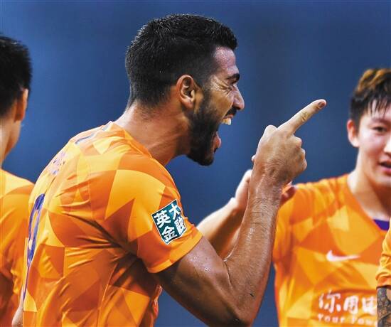 ■山东鲁能泰山队球员佩莱在进球后庆祝。 新华社发 |