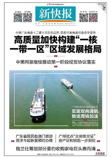 中共广东省委十二届十次全会召开,李希代表省委常委会作报告 高质量加快构建“一核 一带一区”区域发展格局 02 中美同意继续推动第一阶段经贸协议落实 02 广州港深水