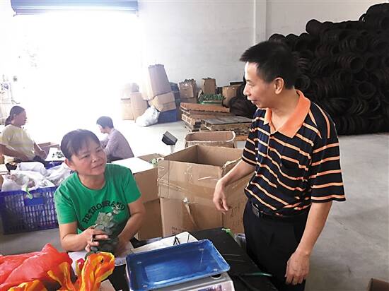 ■肇庆建行扶贫干部在疫情期间,到新合村扶贫车间了解复工复产情況。 |