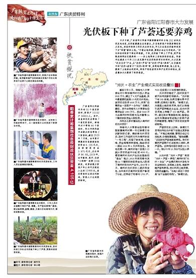 日升日落,广东省阳江阳春市陂面镇南河村占地202亩的光伏发电站里,光伏板兢兢业业抬着头,为当地贫困户的脱贫增收努力发电。而驻村扶贫工作队关注的目光,早已从这些光伏板转到其下方“闲置”着的土地。“不