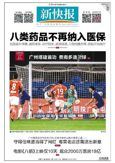八类药品不再纳入医保 包括滋补保健、减肥美容、治疗脱发、戒烟戒酒、口服泡腾剂等,明起开始施行 02 中超第8轮 广州恒大 4∶1 上海申花 广州塔建首功 费南多造三球