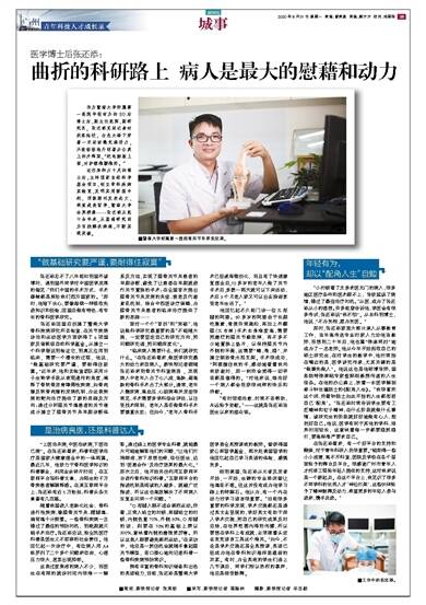 作为暨南大学附属第一医院年轻有为的80后博士后、副主任医师、副研究员,张还添见到记者时笑容灿烂,白色大褂下穿着一双运动鞋充满活力,兴致勃勃地介绍着办公桌上的升降架,“把电脑放上面,对护颈椎腰椎好。