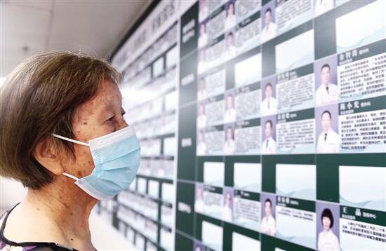 ■一名长者到广州市内一所医院求诊,查看医生的信息。广州市医保局出台的长处方政策已让131万余人受益。 新快报记者 孙毅/摄 |