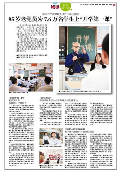 95岁老党员为7.6万名学生上“开学第一课”