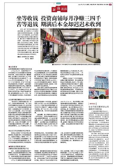坐等收钱 投资商铺每月净赚三四千 苦等退钱 期满后本金却迟迟未收到