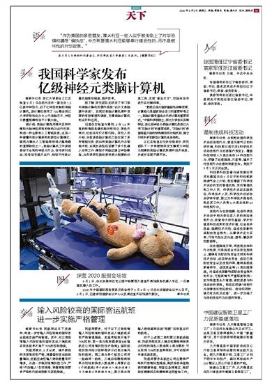 据新华社电 浙江大学联合之江实验室9月1日在杭州发布一款包含1.2亿脉冲神经元、近千亿神经突触的类脑计算机。该计算机使用了792颗由浙江大学研制的达尔文2代类脑芯片,神经元数量规模相当于小鼠大脑。