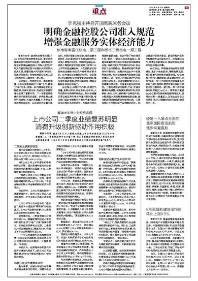 上市公司二季度业绩复苏明显 消费升级创新驱动作用积极