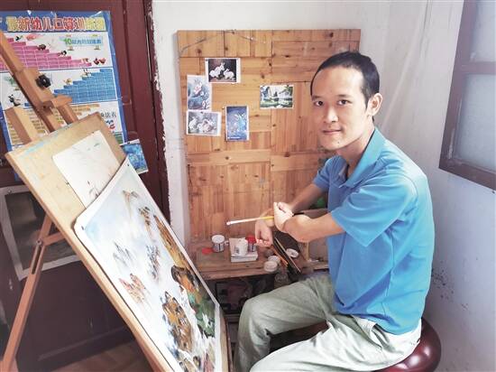 ■新快报记者 杨升华 通讯员 李美全 精准扶贫扶起了病痛人生 1982年,李铸忠出生在一个普通农村家庭,家里就他一个儿子。6岁那年,因一次意外触电,他失去了双手,那次事故至今仍给他留下了非常深刻的记忆。 2004年,为了给父母和穷困的家分担一点责任,他不顾家人的担心和反对,只身到了广州,在广州培英技术学校学了2年的美工专业。李铸忠说:“当时在学校,老师说我不可能学会画画,但我坚信,我可以做到。”相信自己的李铸忠做到了,之后他还留在广州的一家私人画室干了1年多的活,积累经验。 就在他以为命运终于开始眷顾他时,2013年的春天,在家上山干农活躲雨时,李铸忠突遇山体滑坡泥石流,事故造成他腰椎、左大腿和4根肋骨断裂。卧床治疗期间,妻子和他离了婚,留下了年幼的女儿。命运的冷酷,让挣扎病榻的他感到绝望。 2016年,李铸忠迎来了离开病床后的第一个春天,也迎来了国家新一轮的精准扶贫。在扶贫政策的惠及下,在驻村工作队的帮助下,李铸忠的家庭生活发生了翻天覆地的变化。 据驻村扶贫工作队队长巫永林介绍,通过扶贫资金的投入,在村里发展的皇帝柑种植、光伏发电等集体产业项目,给大家带来实际可观收益,贫困户“八有”指标全部落实;工作队建立了贫困村因病陷入困境家庭台账,全额资助建档立卡贫困户参加医疗保险;建立贫困家庭学生台账,协助全村符合政策的贫困家庭学生落实教育扶持政策,防止因贫失学缀学。如此一来,李铸忠家的基本生活、小孩读书都得到了充分保障。 在驻村扶贫干部的重点帮扶下,李铸忠彻底走出人生的阴霾,重燃了对生活的希望,开始直面生活的挑战。2016年下半年,他用残缺的双臂夹起久违的画笔,重新开始描绘只属于他的美好画卷。不仅如此,工作队还大力帮他家开展养蜂经营项目,并积极通过各种渠道帮他打开销路。2017年,通过工作队的大力推销,李铸忠售卖油画作品和蜂蜜收入就达2万余元。2019年,直播开始走红,驻村干部非常赶潮流地为李铸忠在直播平台开设了直播账号,通过直播画画,帮他推销油画作品。李铸忠说:“我不想让别人看不起,我能靠自己养活自己。” 命运多舛仍对未来充满希望 小时候我们都背过“天将降大任于斯人也,必先苦其心志,饿其体肤,空乏其身……动心忍性,增益其所不能”,然而对李铸忠来说,命运的“苦”总是来得让人猝不及防。2019年底,因身体不适到医院检查的李铸忠,被验出鼻咽癌。 面对该建档立卡贫困户突如其来的家庭变故,驻村工作队把李铸忠纳入重点关注对象,加大了对其帮扶的力度。工作队队长巫永林表示,今年上半年,已对李铸忠家发放了一批帮扶物资,通过其父母在家开展生产经营,来提高家庭经营收入。此外,对接了线上电商平台“南方优品”,解决其蜂蜜销售渠道不通不畅导致产品滞销的问题。同时,帮助寻求社会爱心人士、爱心企业,开展“助学圆梦”计划,落实李铸忠女儿上大学的助学计划。 李铸忠不想放弃,也不能放弃,他积极主动地配合治疗。目前,他在中山大学肿瘤医院顺利完成了鼻咽癌治疗手术并出院。说起自己的病和家里的情况,看着家里墙壁上贴得满满当当的女儿获得的奖状,李铸忠乐观地笑了,眼中依旧对未来充满了憧憬。