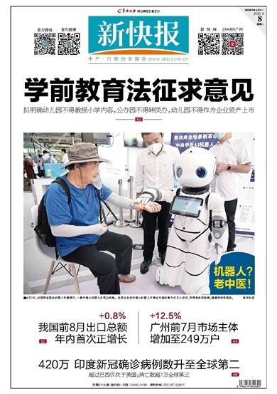 学前教育法征求意见 拟明确幼儿园不得教授小学内容,公办园不得转民办,幼儿园不得作为企业资产上市 02 机器人?老中医! +0.8% 我国前8月出口总额年内首次正增长