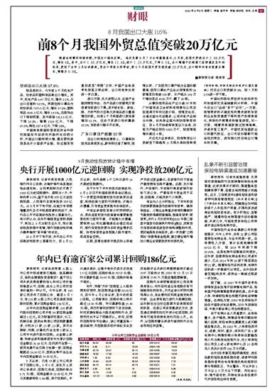2020年9月8日 星期二 责编:杨升华 美编:张汉松 校对:王萃 财眼