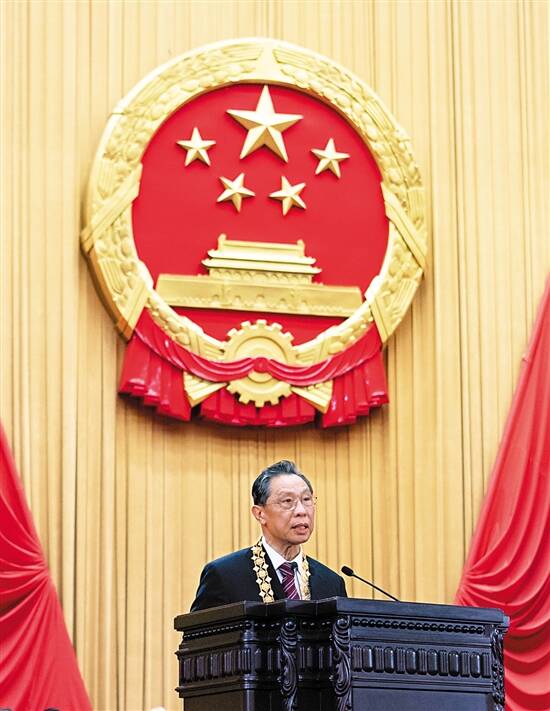 在全国抗击新冠肺炎疫情表彰大会上,钟南山获颁“共和国勋章”,我省共45名先进个人、15个先进集体获表彰。李希代表省委、省政府对钟南山和先进个人、先进集体表示祝贺和敬意。他说,面对突如其来的严重疫情,习近平总书记、党中央坚持人民至上、生命至上,迅速打响疫情防控的人民战争、总体战、阻击战。全省上下坚决贯彻落实总书记、党中央决策部署,广大医护人员白衣为甲、逆行出征,各条战线的同志们挺身而出、迎难而上,在医疗救治、科研攻关、基层防控、物资保障、应急救援、宣传报道、工程建设、志愿服务等各个岗位上同时间赛跑、与病魔较量,为抗疫斗争付出艰辛努力。特别是钟南山院士敢医敢言、勇于担当,不惧个人安危,以84岁高龄奋战在抗疫最前线,提出的防控策略和防治措施挽救了无数生命。在这场同严重疫情的殊死较量中,你们用责无旁贷的担当和勇往直前的行动,与全省人民一道构筑起疫情防控的坚固防线,集中体现了伟大抗疫精神,不愧是广东人民的骄傲。 李希强调,要认真学习领会、深入贯彻落实习近平总书记在全国抗击新冠肺炎疫情表彰大会上的重要讲话精神,在全社会大力弘扬伟大抗疫精神,以新担当新作为奋力推动广东实现“四个走在全国前列”、当好“两个重要窗口”。一要深刻认识抗击新冠肺炎疫情斗争重大战略成果展现出的中国精神、中国力量、中国担当,毫不动摇坚持和加强党的全面领导,紧紧依靠人民、一切为了人民,进一步增强在新时代新征程上披荆斩棘、奋勇前进的自信心和自豪感、凝聚力和向心力。二要大力弘扬生命至上、举国同心、舍生忘死、尊重科学、命运与共的伟大抗疫精神,深入学习宣传抗疫先进个人、先进集体的典型事迹,关心爱护在疫情防控中作出贡献的同志,充分激发全省人民干事创业精气神,广泛凝聚众志成城、共克时艰的强大正能量。三要毫不松懈抓好常态化疫情防控,慎终如始、再接再厉,全面做好外防输入、内防反弹工作,决不能让来之不易的疫情防控成果前功尽弃。四要抓紧补短板、堵漏洞、强弱项,不断完善疾病预防控制体系,构筑强大的公共卫生体系,着力提高应对重大突发公共卫生事件的能力和水平。五要扎实做好“六稳”工作、全面落实“六保”任务,统筹推进疫情防控和经济社会发展工作,切实保障和改善民生,确保高质量完成决胜全面建成小康社会、决战脱贫攻坚目标任务。 钟南山表示,获得“共和国勋章”,既感到无比荣幸,又深感责任重大,由衷感恩党和人民的培养,倍加珍视难得的人生际遇和干事创业舞台。今后将以荣誉为鞭策,与团队一起继续做好科研攻关和临床救治,努力为常态化疫情防控和广东卫生健康事业贡献智慧力量。 (徐林 岳宗)