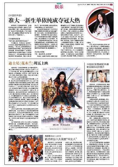 新快报讯 记者徐绍娜报道 由中影华夏发行,迪士尼影业荣誉出品的真人版《花木兰》将于9月11日在内地公映。影片由《卧虎藏龙》制片人江志强监制、女导演妮基·卡罗执导,云集了刘亦菲、甄子丹、巩俐、李连杰