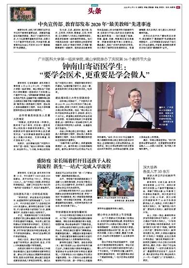 新快报讯 记者高镛舒 通讯员韩文青报道 9月10日上午9时,广州医科大学第一临床学院、南山学院在广州医科大学附属第一医院举办了庆祝第36个教师节大会。“共和国勋章”获得者、全国优秀共产党员、全国教