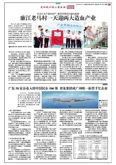 广东58家企业入榜中国民企500强 鼎龙集团成广州唯一新晋千亿企业