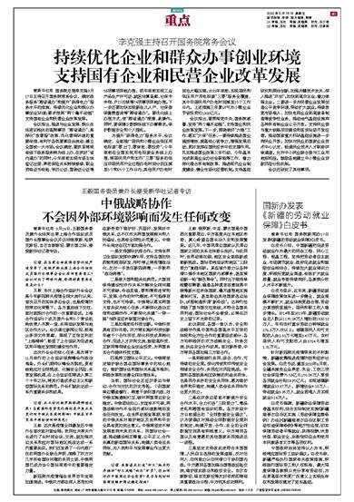 据新华社电 国务院总理李克强9月17日主持召开国务院常务会议,确定政务服务“跨省通办”和提升“获得电力”服务水平的措施,持续优化企业和群众办事创业环境;要求按照“两个毫不动摇”支持国有企业和民营企