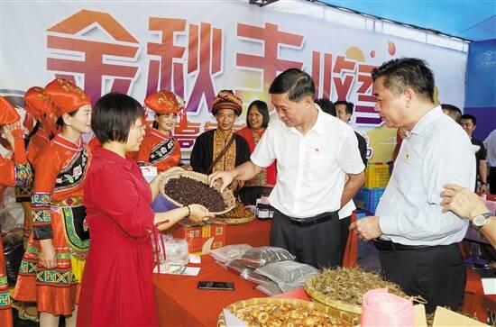 9月19日,2020年中国农民丰收节(阳春)开幕式暨脱贫攻坚成果展系列活动在阳春市东湖广场举行,金花坑春砂仁、石望腐竹、新坡大米、河朗白岭仔绿茶、河口甜薯、圭岗氹仔鱼……来自17个镇(街道)55条省定贫困村的优质扶贫产品齐亮相,琳琅满目,通过书记代言、网红直播、宣传推介等系列活动,走向千家万户。 ■采写:新快报记者 曾贵真 通讯员 蓝威龙 ■图片:受访者提供 网红直播: 刷流量卖特色美食 带徒弟加入直播大军 现场,阳春市抖音网红“唐羽video”落力推销当天的春砂仁蜜、菠萝蜜、柠檬干片等特色产品。他说,想借着此次活动“刷一波流量”,更想通过网络直播的方式让外地朋友了解阳春的特色美食,还想借这个机会教徒弟,让他们早一些加入直播大军,带动阳春的扶贫产品走出广东省、走向全国。“我们的带货目标是20万元。”他说。 新快报记者了解到,阳春市借助抖音网红“唐羽video”开展消费扶贫,先后录制农产品短视频2000多条,开展农产品“直播带货”100余次,带动17个镇(街道)51条贫困村销售特色农产品500多万元。 书记带货: “自家就吃这个大米, 所以敢为它代言” “各位父老乡亲都看过来,欢迎来尝尝石上香粘大米。”为石上香粘大米代言、带货的是阳春市河西街道党工委书记黎尹。现场工作人员用石上香粘大米煮成一锅米饭时,香味扑鼻,吸引大批市民围观尝鲜。“我家食用的就是这个大米,品质好,所以我敢为它代言带货。”黎尹自信地说。 新快报记者了解到,河西街道石上村香粘大米产业由帮扶单位——珠海市委政法委筹集资金投入了2.5万多元,扶持14户贫困户种植桃优香粘水稻约40亩,今年总产量约2.6万斤,现通过线上、线下等多渠道销售,收入约7.8万元,参与种植的贫困户人均增收约1300元。 多方协力: 政府引导+市场运作+社会参与 形成合力 据了解,阳春市建档立卡贫困人口15102户34403人已全部达到脱贫标准,55个相对贫困村全部达到出列标准。累计投入产业帮扶资金2.3亿元,建成村、户项目1.3万多个。目前,阳春市深入推进“消费扶贫、助力脱贫攻坚”,通过政府引导、市场运作、社会参与形成扶贫“大合力”,带动扶贫产业健康发展、贫困户稳定增收。 今年以来,阳春市广泛动员社会力量参与脱贫攻坚工作。以学校食品派送、工会消费扶贫为主导,推进贫困村农产品进食堂、单位。通过动员机关、学校和企事业单位参与消费扶贫,购销贫困村农产品藠头6万余斤、淮山10万余斤,金额达200多万元。同时,组建120多个邮乐购站点、270多个益农信息社、7个阿里巴巴天猫电商网点,与广东小马食品配送有限公司合作成立扶贫爱心超市,在17个镇(街道)618条村搭建电商网点,带动销售农产品1.2亿元。 此外,阳春市还通过举办春砂仁旅游文化节、南粤古驿道定向大赛暨乡村游旅文化节、农产品消费扶贫展销会等活动,充分利用互联网、高村扶贫抖音直播间、农产品电商平台、广东省东西部扶贫协作产品交易市场和珠海市星园扶贫市场等平台带动17个镇(街道)贫困村销售特色农产品。