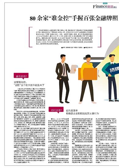 历经多年探索后,金控监管终于靴子落地。日前,国务院发布了《国务院关于实施金融控股公司准入管理的决定》(下简称《准入决定》),同一时间央行对外公布了《金融控股公司监督管理试行办法》(下简称《金控办法》),自此,金控终于被纳入监管。据《中国金融监管报告(2019)》不完全统计,截至2018年12月末,我国已有约80家金融控股公司和“准”金融控股平台。据新快报记者不完全统计,这80余家“准金控”平台手握了至少百张金融牌照,如蚂蚁集团就手握支付、银行、基金和保险牌照,民营金控万向系也分别有保险、信托和期货牌照。有业内人士坦言,不少央企金控集团近年来已逐步完善了公司股权和治理机制,而此次监管落地后,互联网和民营金控将迎来挑战。 ■采写:新快报记者 许莉芸 范昊怡 ■制图:廖木兴 谁有资格? 监管落地后, “金控”这个名字就不能乱叫了 一直以来,由于没有准入门槛,不少公司自称为“金控”集团,新快报记者在天眼查上以“金融控股”为关键词就搜索到了2万多家企业。不过监管落地后,以后“金控”的名字就不能乱叫了。《准入决定》规定,未经中国人民银行批准,不得登记为金融控股公司,不得在公司名称中使用“金融控股”“金融集团”等字样。 从目前非金融企业主导的金控公司现状来看,主要涉及到四类,第一类是央企金控如招商局集团等,第二类则是地方金控,广东就有越秀金控和粤财控股,第三类则是民企金控,如明天系、万向、恒大等,第四类则是互联网金控,如蚂蚁集团、京东数科、度小满、360数科等。 然而并非上述所有金控都将被监管。是否要申请金控牌照,主要有三点,首先旗下控股金融机构是否超过两类。根据央行列举金融机构范畴,即在银行、证券、保险、基金、信托、期货、金融租赁、金融资产管理等两个或者两个以上金融领域拥有牌照或者实际控制该金融机构的公司,都属于金融控股公司。而类似小贷、消费金融、保理、融资租赁、理财子公司等都不算在内。第二点则是金融资产规模是否超过集团总资产的85%。 最后一点,从资产规模上是否达到央行门槛,毕竟规模太小央行也管不过来。旗下如果含商业银行的话,资产规模不少于5000亿元;非银行金融机构总资产不低于1000亿元,或受托资产规模不低于5000亿元。之所以单独对表外受托资产管理单独设置5000亿元,金融监管研究院院长孙海波表示,可能主要是针对蚂蚁金服,蚂蚁金服虽然金融板块庞大,但是其控股的金融机构分别为网商银行和天弘基金,但表内资产规模太小,远不足以达到银行5000亿元的表内规模,公募基金表内更没有达到1000亿元,但是天弘基金货币基金规模庞大,3年前就突破1.6万亿。 对于金控公司的设立,《准入决定》要求申请设立金融控股公司的企业,实缴注册资本额不低于50亿元人民币,且不低于直接所控股金融机构注册资本总和的50%,并有能力为向金控公司以及所控股金融机构持续补充资本。对于已具备设立情形且拟申请设立金控公司的,向人民银行提出申请的时间,相较于征求意见稿,从《金控办法》实施后半年修改为一年内,也就是过渡期为一年。 设负面清单 明确禁止金控控股股东从事行为 如何监管? 事实上,从2017年开始监管表态中就传递出金控要纳入监管的信号。2017年12月,央行开始推动大型金控集团的模拟监管试点。2018年11月初,央行在《中国金融稳定报告2018》中披露了五家金控公司模拟试点名单,分别为招商局集团、蚂蚁金服、苏宁集团、上海国际集团和北京金控。去年7月底,央行就发布了《金融控股公司监督管理试行办法(征求意见稿)》,酝酿14个月后,金控监管终于落地。 如果说《准入决定》给了金控一个“行政身份”的话,那么《金控办法》则从股权结构、公司治理等方面提出了更为细致的要求。在股权结构上,金控公司的股权结构代持、交叉持股、多级股权结构等均被明确禁止,力求金控公司的股权能够做到简单、明晰。 如规定投资方在申请设立金控时,应该书面逐层说明其股权结构,直至最终的实际控制人;不得代持或者利用非自有资金进行投资;新设金控公司的股权层级不得超过三级;还要做到“一控两主参”,即同一投资人及其关联方,作为主要股东参股金控的数量不得超过2家,实际控制的数量不得超过1家。 与此同时,针对金控公司的经营行为也覆盖了诸多方面,包括并表管理、资本充足率、风险管理、关联交易等。特别是在内控方面,规定了金融控股公司应当建立风险隔离机制,包括金控公司与其所控股机构、其所控股机构之间的风险隔离制度。 更重要的是,在实际业务中,金控公司尤其看重不同子公司之间的协同效应。对此,《金控办法》也作出规范,要求金控公司与其所控股机构之间、其所控股机构之间在开展业务协同,共享客户信息、销售团队、信息技术系统、运营后台、营业场所等资源时,不得损害客户权益,应当依法明确风险承担主体,防止风险责任不清、交叉传染及利益冲突;并且集团内部共享客户信息时,应经客户书面授权或同意,防止客户信息被不当使用。这也体现了行为监管、动态监管的思路。 此外,还设置了金控股东行为负面清单,比如控股股东不得通过特定目的载体或委托他人持股等方式规避金融控股公司监管;二是关联方众多,股权关系复杂、不透明或存在权属纠纷;三是滥用市场