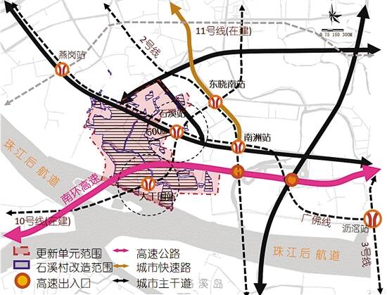 作为海珠创新湾西段全线贯通的“最后一公里”,位于海珠区西部、珠江后航道的石溪古村,将迎蝶变。昨日,第三届广州市城市规划委员会城市更新专业委员会第六次会议召开,审议通过了《海珠区石溪片区城市更新单元详细规划》。 根据规划,这一旧村改造面积达101.37公顷,未来将崛起268米超高层星级酒店,形成门户地标。同时,规划通过“活力通廊”“无忧翠环”“缤纷T台”等设计理念,打造立足海珠创新湾西段、辐射广佛的“应用创新服务区、智慧人居体验区、滨江活力休闲区”。而石溪旧村改造的全面启动,也将推动地铁10号线、广佛线三期(燕岗-沥滘)、快捷路二期、环岛路等建设。 ■新快报记者 沈逸云 通讯员 穗规资宣 背景 整个更新改造过程分为四期 海珠区石溪片区城市更新单元位于广州市海珠区西部,沥滘片区与广纸片区之间,是海珠区“一区一谷一湾”创新发展格局中海珠创新湾上重要一环。项目东至瑞宝路,南临珠江后航道,西至石岗路,北至江南大道南。 今年2月,《石溪片区策划方案》通过市城市更新工作领导小组会议审议。今年5月,石溪经济联社向市规划和自然资源局海珠区分局提交控规调整申请,正式开展《海珠区石溪片区城市更新单元详细规划》编制工作。 规划表示,作为海珠创新湾西段全线“贯通”的“最后一公里”,通过石溪片区的更新改造,打造高质量发展时期的“海珠样本”,将有利于发挥轨道周边地区的土地价值、整合后航道“一江两岸”城市设计,并释放更多高品质的公共空间。同时,该旧改的全面启动也对推动地铁10号线、广佛线三期(燕岗-沥滘)、快捷路二期、环岛路等系列大型基础设施建设具有重要意义。 石溪村将整体采用“滚动改造、分期实施、先安置、后开发,优先建设公共配套设施”的方式,整个更新改造过程分为四期。经测算总改造成本为176.99亿元。 布局 活力通廊串联石溪门户、滨江云台 根据规划,该项目将围绕“活力通廊”“无忧翠环”“缤纷T台”等设计理念,植入丰富公共服务配套和产业功能,打造立足海珠创新湾西段、辐射广佛的“应用创新服务区、智慧人居体验区、滨江活力休闲区”,并形成相应三大产业板块。 具体来看,“活力通廊”拟构建联系石溪、大干围这两大轨道节点的城市活力走廊,增强高架两侧联系,串联石溪门户、滨江云台两大门户节点以及主要社区配套设施。 此外,该片区内的南部江畔将搭建起“滨江云台”,充分利用南部滨江景观资源,依托大干围及规划地铁站,打造后航道最聚人气的魅力公共配套和产业空间。记者从规划图上发现,未来江边将拥有268米地标塔楼星级酒店、花园式总部办公、智慧创客共享办公、甲级写字楼、地铁上盖商业综合体、工人文化宫、滨江公园、智慧运动中心等。 具体到产业布局上,依托海珠创新湾“广州智能应用创新中心与广佛体验消费商圈”的定位,该片区将重点发展人工智能应用创新创业与滨水特色体验消费产业。 空间 三大环线串起高品质公共空间 该片区另一大设计理念“无忧翠环”,旨在整合现有河涌及零散绿地形成串联学校及配套设施,通过三大环线,打造24小时活力的高品质公共配套和活力空间。 具体来看,一是“健康运动环”,通过24小时跑道、运动公园、运动草坪、球场设施、健身设施等,整合社区各类运动设施;二是“安全回家环”,该环线上主要是各幼儿园、中小学,为学生提供无车干扰、安全回家的环线;三是“石溪记忆环”,该环线上分布着石溪村的历史人文节点,包括何善衡故居、村口古树、赛龙舟、水上花市等,供游客一品历史悠久的古石溪。 “缤纷T台”这一设计理念则是整合桥下、防护绿地和滨江水岸空间,构筑珠江后航道上的“缤纷T台”。一方面,打造缤纷桥廊,激活灰色空间,打造缤纷桥下公园。规划称,将依桥底高度变化,构筑全气候、全年龄、全时段的活力空间,同时对桥底空间复合利用预留空间,预留桥底道路方案。另一方面,打造缤纷水岸,以“石”与“溪”为主题,打造2公里的活力滨江公园。 值得关注的是,在建筑高度控制上,更新单位内将形成三个层次的滨江城市界面:第一层是滨江一线多层建筑高度不超过60米,体现灵活多变;第二层为二线沿江高层控制高度不超过170米,控制面宽,并打造望江视线通廊;第三层的高层以268米超高层塔楼为视觉焦点,形成门户地标。 交通 规划新增8条区域道路 3处停车场 在轨道交通方面,石溪片区区位优势较为明显,有4条地铁可直接为更新单元服务——已建成的地铁2号线、3号线以及在建的地铁10号线、11号线,从而实现与对外枢纽、商圈及科创基地快速联系。 而在道路交通方面,规划提出打破对外交通瓶颈,增加对外通道,提高对外路网能力。针对对外通道单一且拥堵问题,规划新增8条区域通道,形成19个对外出入口,较现状增加10个,包括:打通江南大道并南延至环岛路;新增环岛路;新增规划一路;打通宝岗大道;打通逸景路至石岗路;南州北路西延至环岛路;新增东晓南路-南站联络线;新增快捷二路过江隧道等。 单元内还规划新增3处公交首末站;规划新增3处公共停车场,提供730个泊位,满足商业、休闲设施停车需求。 此外,本次规划还提出了与南环高速下沉方案的协同方案,丫髻沙大桥往东在跨越规划一路后开始下地,两侧设上下桥匝道,下地后设置隧道下穿路面继续往