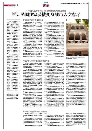 一栋罕见的民国中西合璧住家骑楼建筑,经一家企业投入数千万元改造,已脱胎换骨为集书吧、论坛与表演空间、西洋古董艺术馆于一体的城市人文客厅——广州首例活化利用历史建筑侨商楼近日完成修缮,开门迎客。