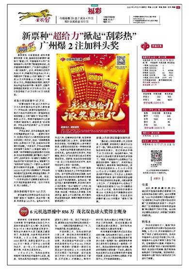 新票种“超给力”掀起“刮彩热” 广州爆2注加料头奖