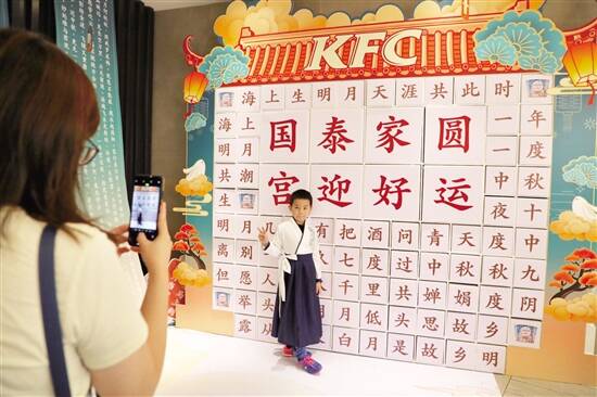 新快报讯 记者陈思陶报道 2020年的中秋遇上国庆,在这个特别节日里,有这么一群人却仍需坚守岗位,他们就是广大医护人员。作为健康的守护者,他们为大家撑起了安全的保护伞。恰逢中秋、国庆双节同庆,新快报与肯德基携手,在9月26日下午举办“新快报‘好医生好故事’暨书画院中秋国泰家圆主题活动”,邀请来自广医二院、广东省职业病防治院的医护人员家庭提前同庆佳节,祈祷国泰家圆,并向他们表达敬意与感谢。 《中秋佳瑞图》活了 让中秋多点国风古韵 中秋节是中国四大传统节日之一,寄托着不同时空、不同地域的人们不变的美好祝愿,这些共同的情思也凝聚在传世佳作或文化典故中。受邀的大小朋友们走进肯德基金沙店主题餐厅,中国风的设计装饰,小朋友们身穿汉服与襦裙,好似穿越时空与古人共赏明月。 记者了解到,肯德基在中秋国庆期间将与故宫博物院合作,以故宫收藏的《中秋佳瑞图》为灵感,推出融入传统文化元素的“国泰家圆”主题桶,101款限量“宫迎好运签”。据悉,该画描绘了大人和孩童在节日游戏庆祝的场景,表达欢愉团圆之情。借助画中寓意国泰民安的美好祝愿,主题餐厅中再现的故宫宫墙、灯笼、灯谜签、宫迎好运签等国风设计更增添氛围,医护人员家庭纷纷合影纪念。 吟古念今 品味诗词中的明月千里寄相思 中秋作为国人独特的文化记忆,除了各色美味的月饼,也少不了优美的诗词,承载着国人对团圆、圆满的共同期待,稚龄之子也会吟诵“举头望明月,低头思故乡”。 活动中,小朋友分别挑选了自己喜爱的有关中秋、明月的诗句,使用汉字模块在写满了诗词的墙上填字。选填了“明月几时有,把酒问青天”的小超今年11岁,她不仅熟知词作者苏轼的故事,还唱出了《水调歌头》的经典旋律,赢得现场大小朋友们的掌声。 挥毫泼墨 “宫迎好运”送上祈愿与祝福 “五湖四海的人们共赏一轮明月,明月成了分别的人们共同的镜子,照出彼此的思念。”孩子们诵读“但愿人长久,千里共婵娟”的声音刚落,广东省书画家陈煜也现场写下了“海上生明月,天涯共此时”全诗。同时,陈煜热心分享书法小技巧,指导孩子们完成自己的第一幅书法作品,并将题写“月圆人和”“花好月圆”等蕴含美好祝愿的横幅送给他们。 除了感受书法的魅力,孩子们也用活字印刷的模具DIY了定制的“宫迎好运签”,体验传统文化,并将满满的祝福和好运带回家。