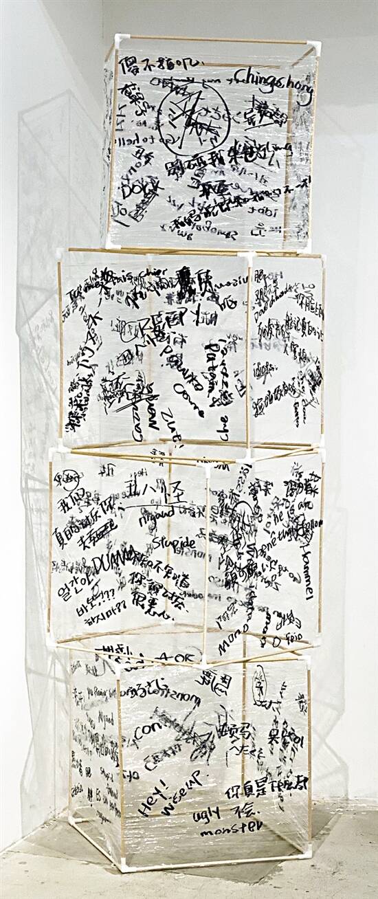 ■保鲜膜上写满了“记忆中那伤人的话” |