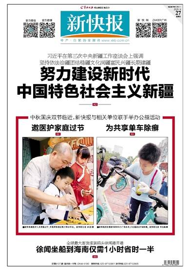 习近平在第三次中央新疆工作座谈会上强调 坚持依法治疆团结稳疆文化润疆富民兴疆长期建疆 努力建设新时代 中国特色社会主义新疆 02 中秋国庆双节临近,新快报与相关单位联手举