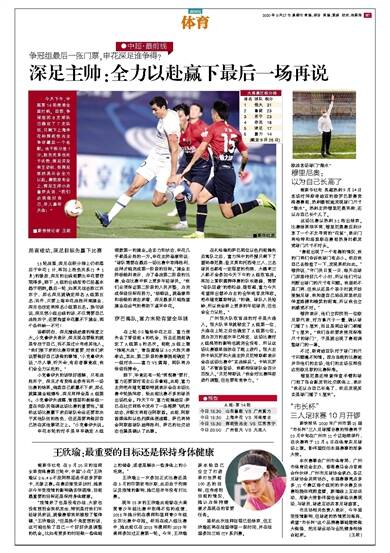 ●中超·最前线 今天下午,中超第14轮就将全面打响。目前,争冠组的8支球队已确定了7支队伍,只剩下上海申花和深圳佳兆业争夺最后一个名额。由于积分差1分、胜负关系也处于劣势,深足并没有主动权,但