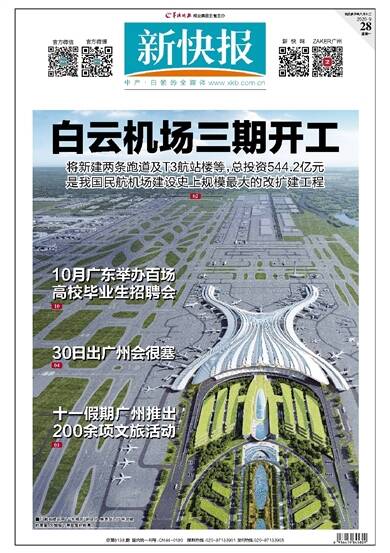 白云机场三期开工 将新建两条跑道及T3航站楼等,总投资544.2亿元 是我国民航机场建设史上规模最大的改扩建工程 02 10月广东举办百场 高校毕业生招聘会 10