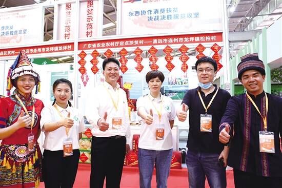 ■省农业农村厅定点扶贫村清远连州龙坪镇松柏村展区,扶贫工作人员为当地农特产品点赞。 |