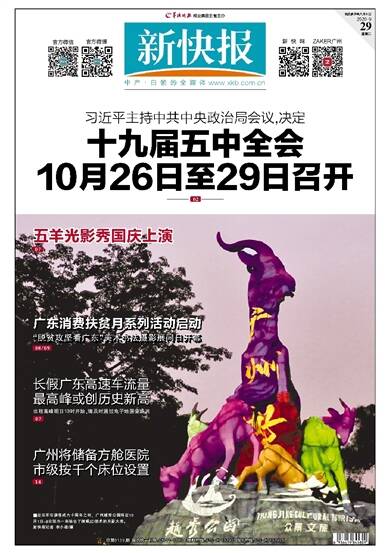 习近平主持中共中央政治局会议,决定 十九届五中全会 10月26日至29日召开 02 五羊光影秀国庆上演 07 长假广东高速车流量 最高峰或创历史新高 出程高