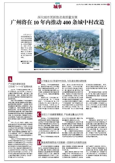 9月28日,广州市政府新闻办召开了广州市深化城市更新推进高质量发展专题新闻发布会。发布会明确提出,未来3年内,推动广州83条城中村改造,5年内推动183条城中村改造,10年内推动400条城中村改造