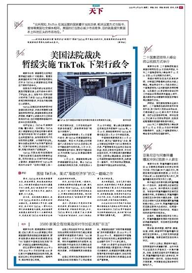 据新华社电 美国哥伦比亚特区联邦地区法院27日晚裁决,暂缓实施美国政府关于将互联网短视频社交平台TikTok从美国移动应用商店下架的行政命令。 法院当天早些时候以电话形式就是否暂缓实施上