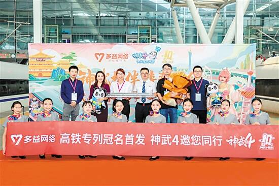 9月29日下午,一趟绘装上浪漫中国风游戏场景与游戏角色的列车在广州南站徐徐开出。这是广州知名游戏企业多益网络在旗下经典IP“神武”系列迎来十周年庆之际,携手中国高铁特别定制的“神武专列”,一趟满载着青春记忆的愉快之旅。列车上的乘客,或与随车Coser合影留念,或现场扫码参与有奖互动,充满快乐气氛。 据悉,这场别具新意的跨界活动,是“神武十周年”系列庆典活动内容的一部分。三天前,多益网络还携手广州长隆欢乐世界,为25对因“神武”而相识相知的新人玩家,举办了一场盛大的中式风格集体婚礼,满满的仪式感。 虚拟的游戏,真实的幸福。作为“游戏奋斗者”,多益网络一直致力于打造真正好玩的游戏,为玩家带来快乐陪伴,创造幸福体验。今年,“神武”系列已陪伴玩家走过十个年头,未来,也将继续陪伴大家一路向前,见证更多的幸福与美好! 打造“神武专列” 邀请玩家一起纵横神州大地 作为多益网络旗下的经典IP大作,“神武”系列以中国传统文化为背景,为玩家们打造了一个“绿色、公平、健康”的网络社交生态,且不断更新创意玩法,网聚千万玩家。 “到今年,神武系列已经陪伴全国各地、千万玩家并肩走过十个年头。一路走来,好比一趟充满趣味的愉快之旅。”在“神武专列”的首发仪式上,多益网络品牌负责人如此表示。为此,在“神武”系列十周年之际,多益网络特别携手中国高铁,定制神武专列,满载着玩家情感故事,驶往京沪、沪广路线,纵横神州大地;用“移动的情感博物馆”方式,和玩家朋友回顾十年青春记忆,向社会各界展示神武的情怀。 互联网时代,网络游戏作为重要文化载体的创新功能日益凸显。多益网络近年开启“神武山河”计划,联动文旅景区,用网络游戏的方式记录再现祖国的锦绣山河。继全国最大诸葛亮后裔聚居地——浙江金华诸葛八卦村之后,多益网络即将与“中国第一水乡”——江苏周庄古镇开启2.0版的合作,打造“神武小镇”。 首发活动现场,多益网络也向乘客们发出盛情邀请,欢迎大家乘坐神武专列,畅游景区,更欢迎大家加入“游戏+景区”活动,一起传播优秀的中华传统文化。 “很高兴遇见你” 为神武玩家举办集体婚礼 作为一款运营十年的经典网游,“神武”系列参与了无数玩家的青春岁月,也沉淀了不少珍贵的情感故事和回忆。 9月26日,多益网络联合广州长隆欢乐世界,为25对因“神武”而相识相知的新人,举办了一场主题为“很高兴遇见你”的集体婚礼。婚礼舞台以传统的大红为基调,并巧妙地融合游戏中主城“长安城”的元素,将现场打造出更具神武色彩的婚礼氛围。 身着红色喜服的25对新人依次登场,在主持人的引导下,完成了鞠躬礼、挑盖头、夫妻对拜、宣读婚约等一系列传统中式婚礼体验。有别于以往常规的交换婚戒环节,《神武4》还特意为新人准备了游戏内经典“峰月CP”二人的定情信物“初心手链”,让新人们相互为伴侣戴上。 多益网络副总裁、工会主席颜海冰作为本次玩家集体婚礼的证婚人,在现场为新人们送上诚挚的祝福:遇见爱情是甜蜜的,步入婚姻则意味着责任。她祝愿现场因神武而结缘的25对新人,家庭美满,早生贵子,幸福一生。正如多益网络董事长徐波向多益人分享的那样,两人步入婚姻需要双方修养好自己的品性、还要端正好对待婚姻、对待家庭的态度和孕育下一代的责任,而后我们才能为社会、为国家作更多的贡献,我们的生活也会越来越美好。(郑志辉)