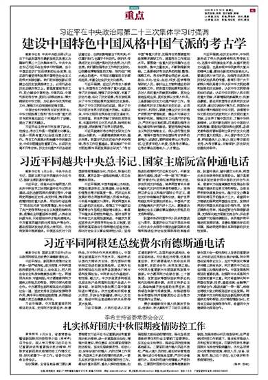 据新华社电 国家主席习近平9月29日晚同阿根廷总统费尔南德斯通电话。 习近平指出,新冠肺炎疫情对全世界是一场严峻考验。面对疫情,中阿两国政府都坚持人民至上、生命至上,把人民生命安全和身体健康放