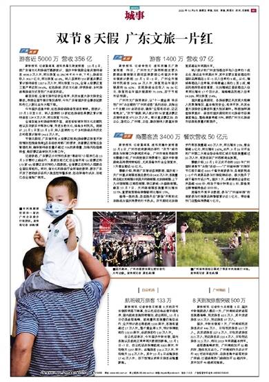 广东 旅游 游客近5000万 营收356亿 新快报讯 记者黄闻禹 通讯员粤文旅宣报道 10月8日,据广东省文化和旅游厅最新统计,国庆中秋假期全省共接待游客4998.0万人次,同比恢复