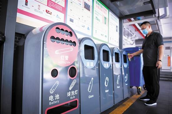 ■福田区居民按类别将垃圾扔入分类垃圾桶。 ■福田区居民按类别将垃圾扔入分类垃圾桶。 |