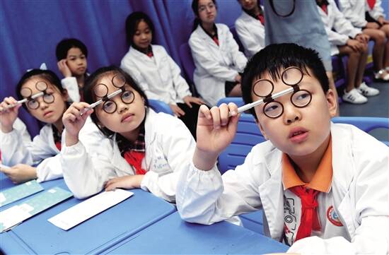 ■9月10日,福建省邵武市实验小学学生在近视防控实践课上开展眼睛灵敏度调节训练。新华社发 |