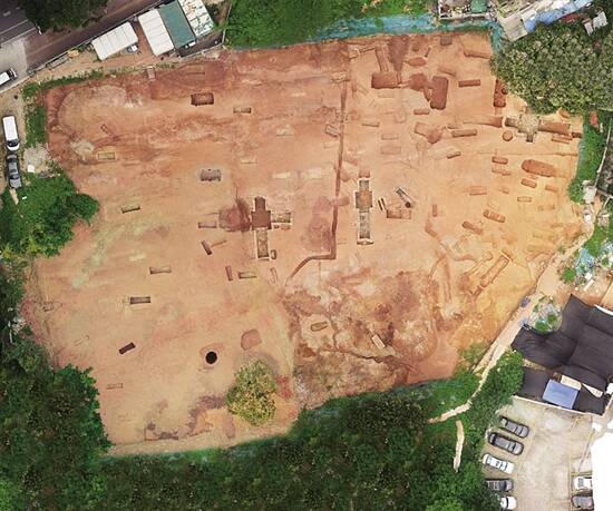 ■广东广雅中学莲韬馆复建工程项目考古发掘全景航拍。 |