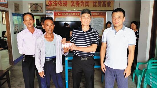 ■吴金如(右二)把互助金捐给村里有需要的贫困户。 |